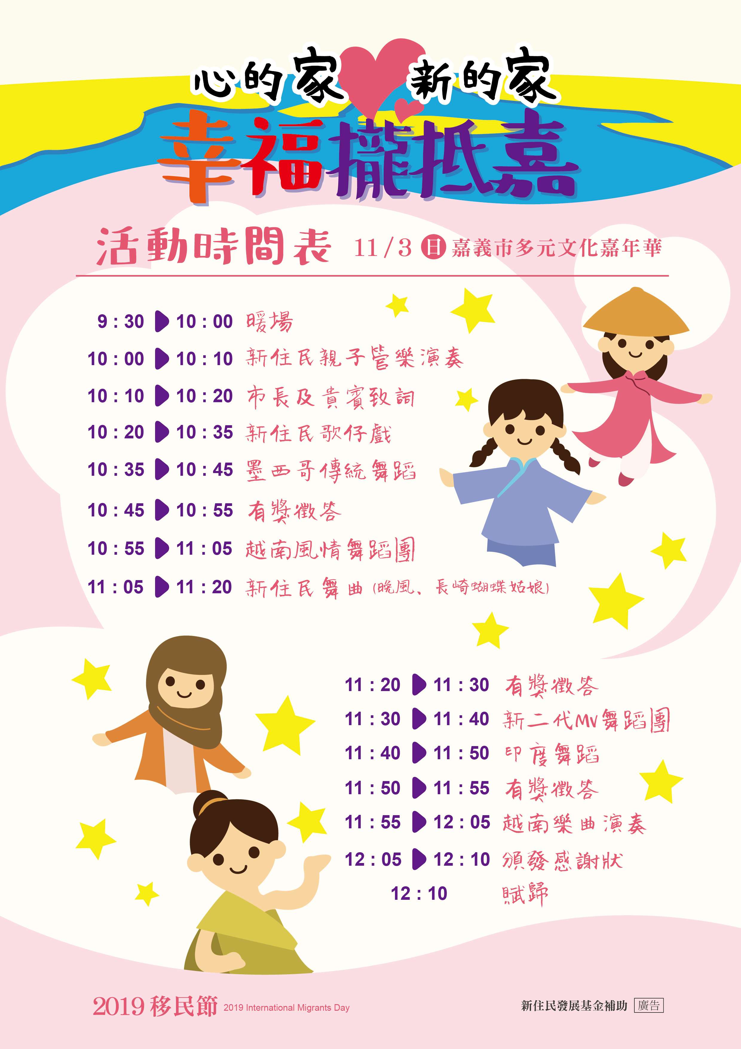 2019移民節-多元文化嘉年華11月3日上午於本市中央廣場舉行,邀約大家一起體驗多元文化饗宴。