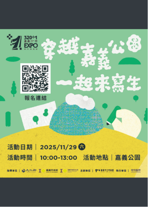一、為深化本市美學扎根,延續「畫都」精神,訂於11月29日 上午10時至中午13時,於嘉義公園辦理2025寫生日「穿越 嘉義公園.一起來寫生」活動。