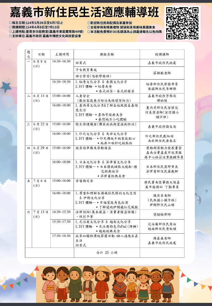五、即日起受理報名,額滿截止(以報名順序為準),相關報 名事宜,請電話洽詢嘉義市傳統文化與技藝協會05- 2279996。